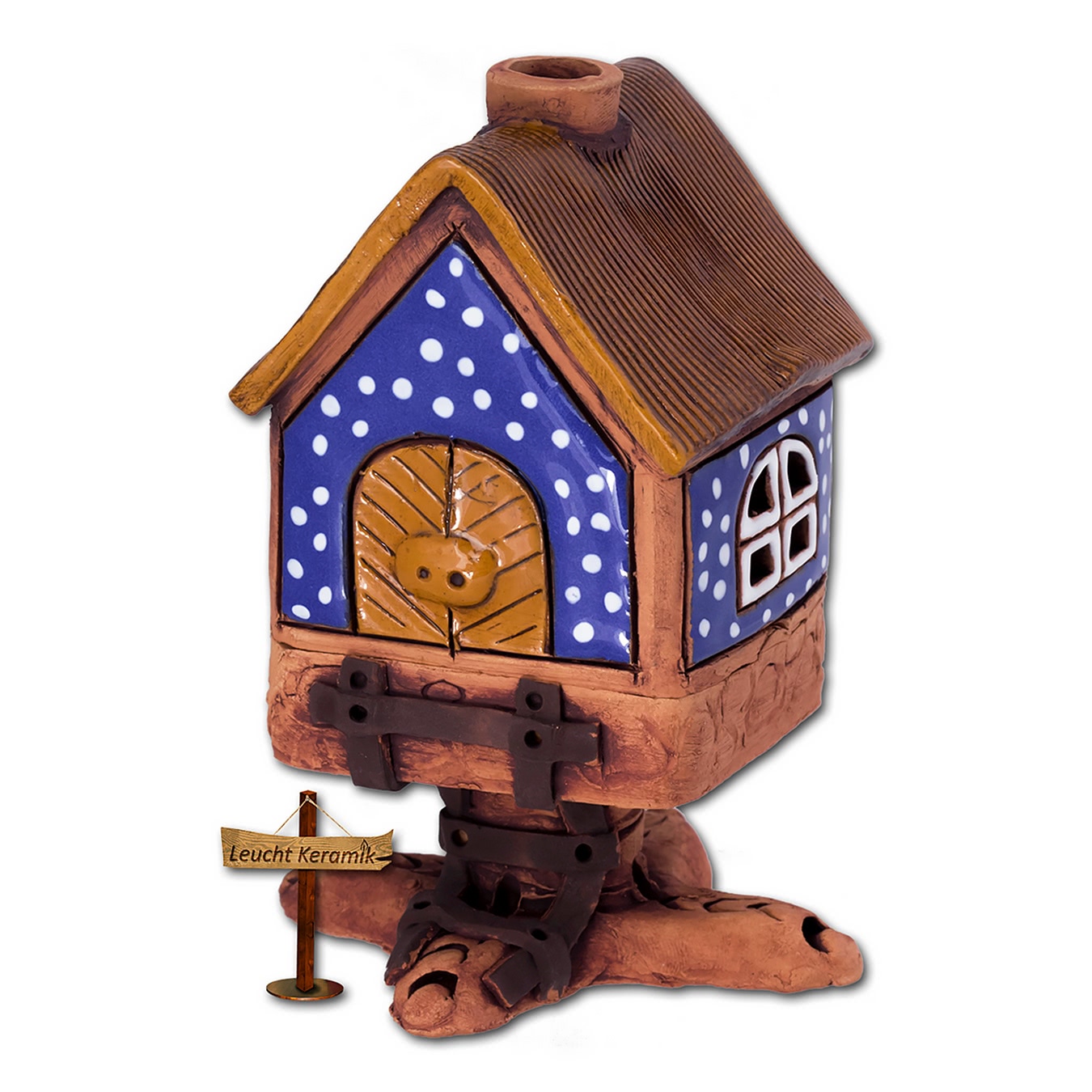 LeuchtKeramik Deko Teelicht Hexenhäuschen blau Lichthaus 10cm hoch DKH09B