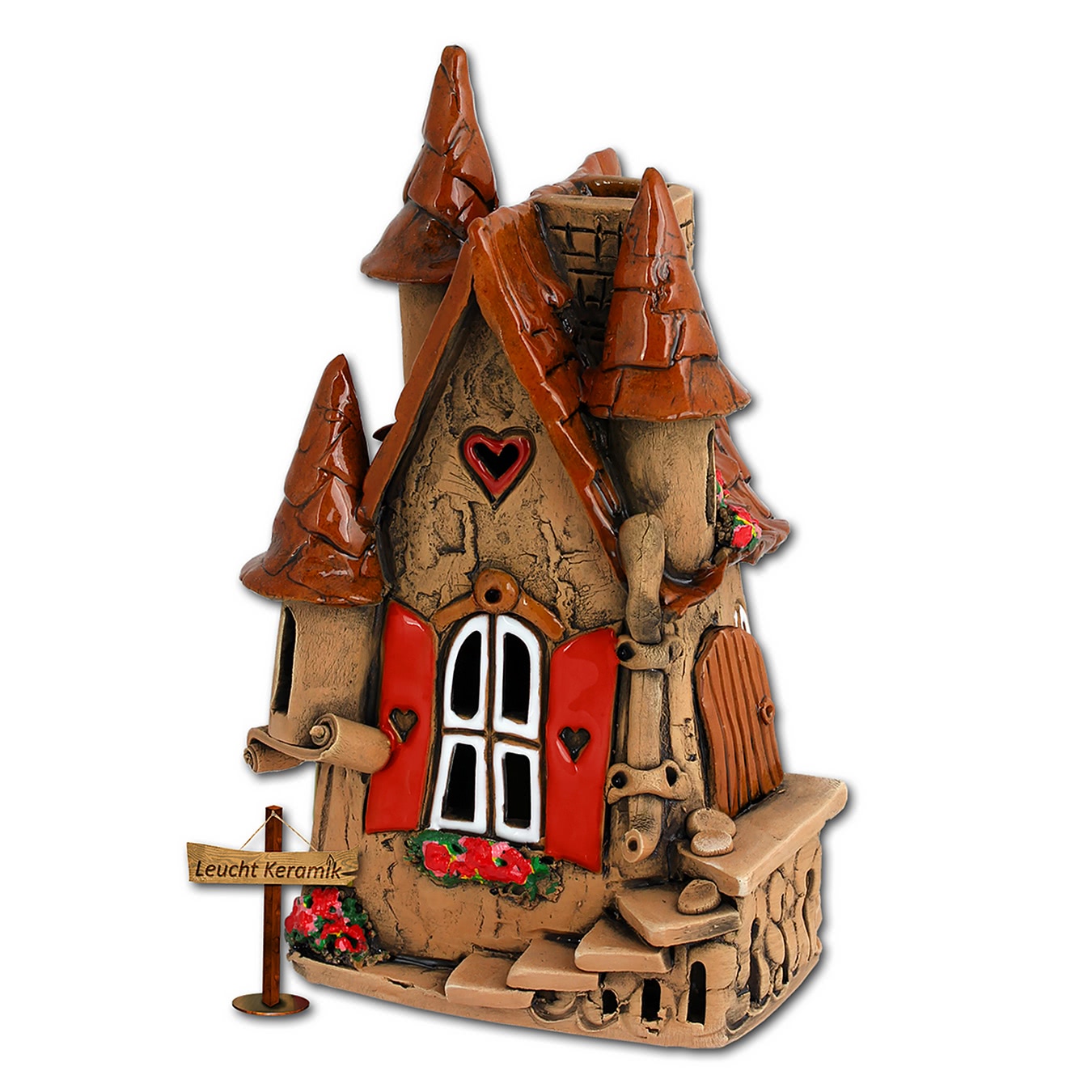 LeuchtKeramik Deko Teelicht Villenhäuschen rot Lichthaus 15,5cm hoch DKH17R