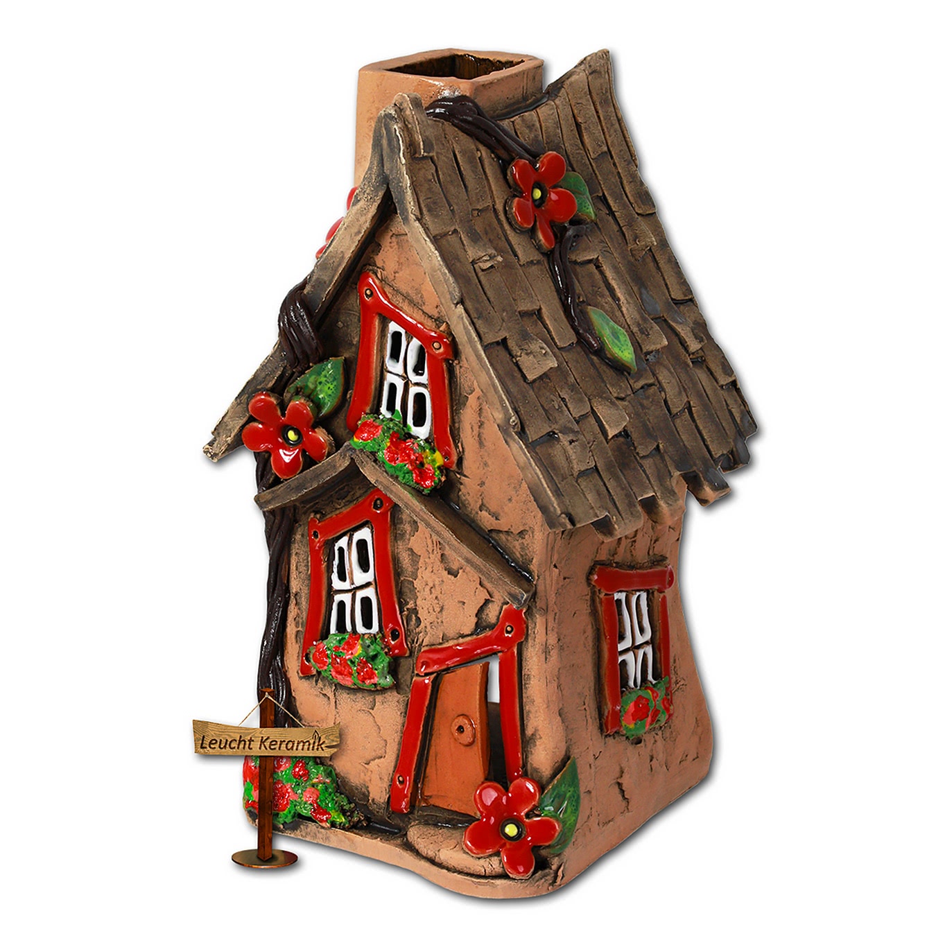 LeuchtKeramik Deko Teelicht Hexenhaus rot braun Lichthaus 14cm hoch DKH19R