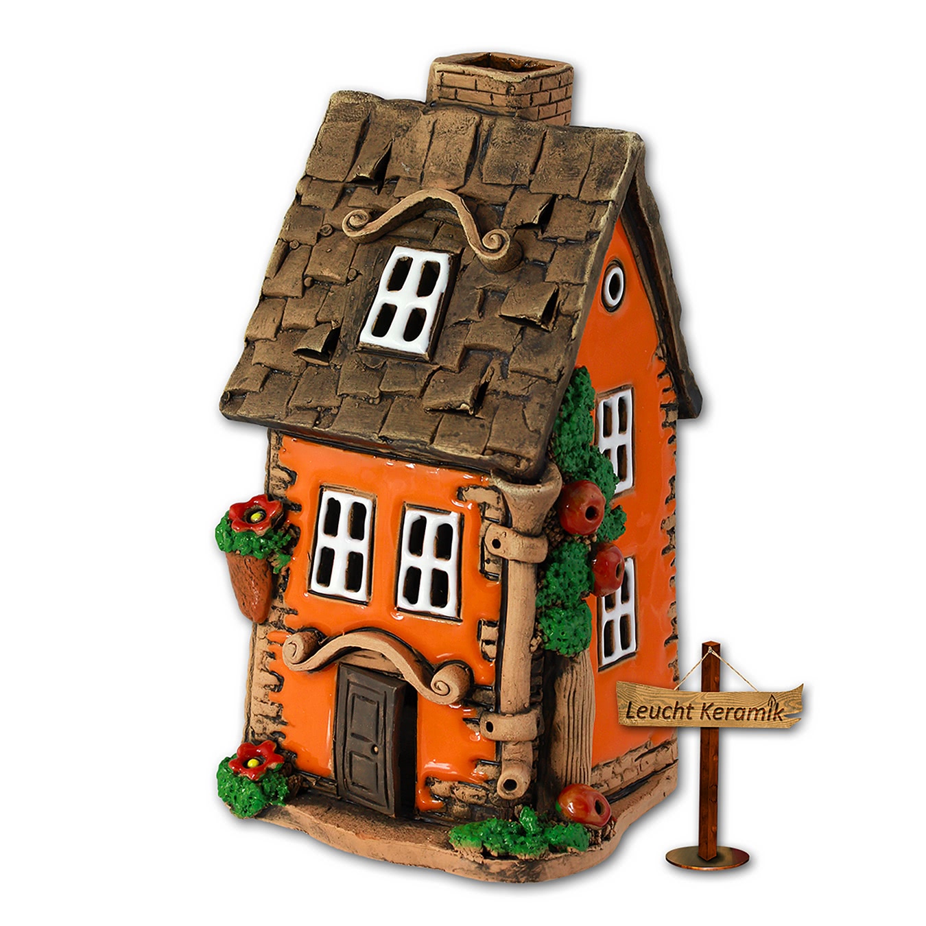 LeuchtKeramik Deko Teelicht Familienhäuschen orange Lichthaus 13,5cm DKH40O