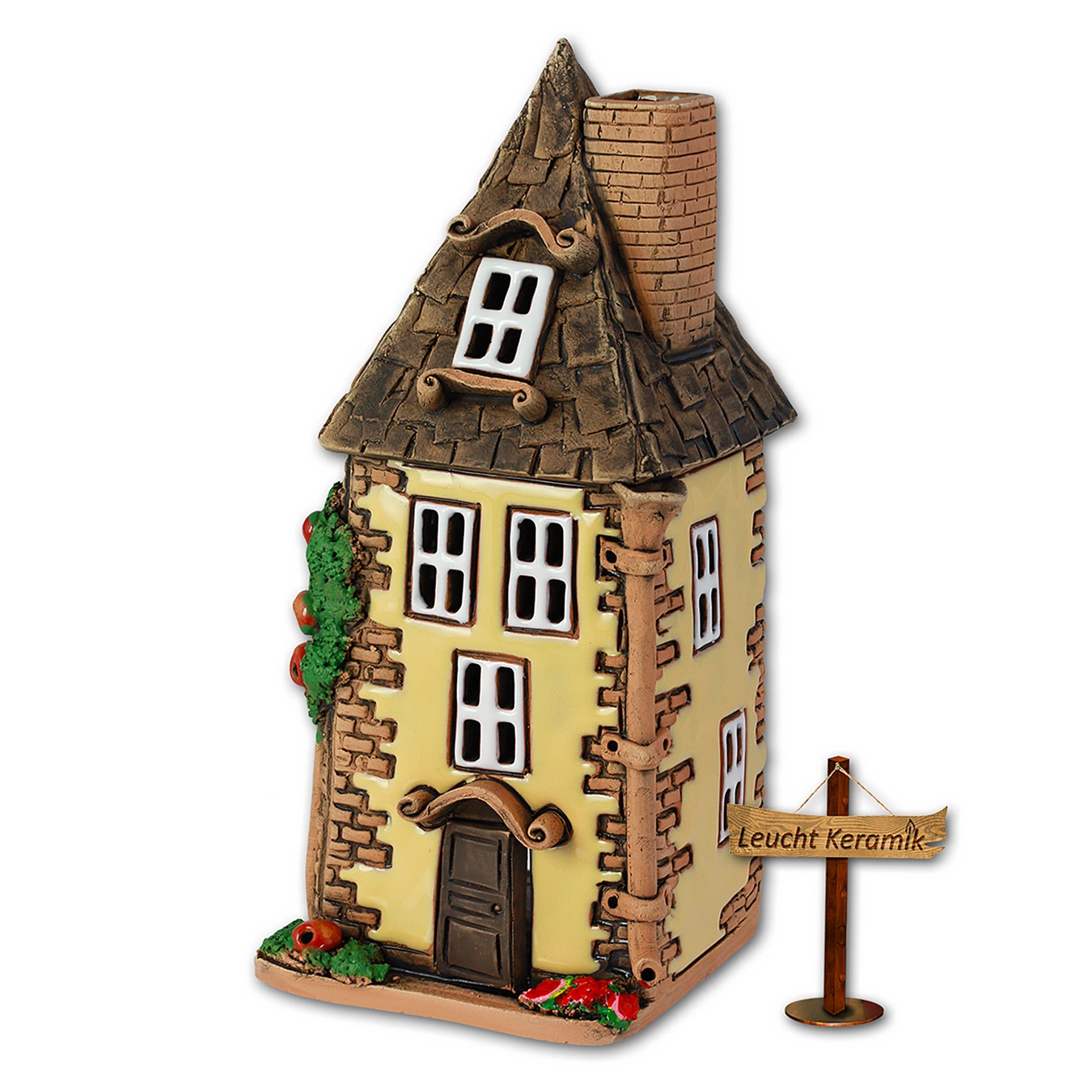 LeuchtKeramik Deko Teelicht Posthäuschen gelb-beige Lichthaus 18cm DKH44N