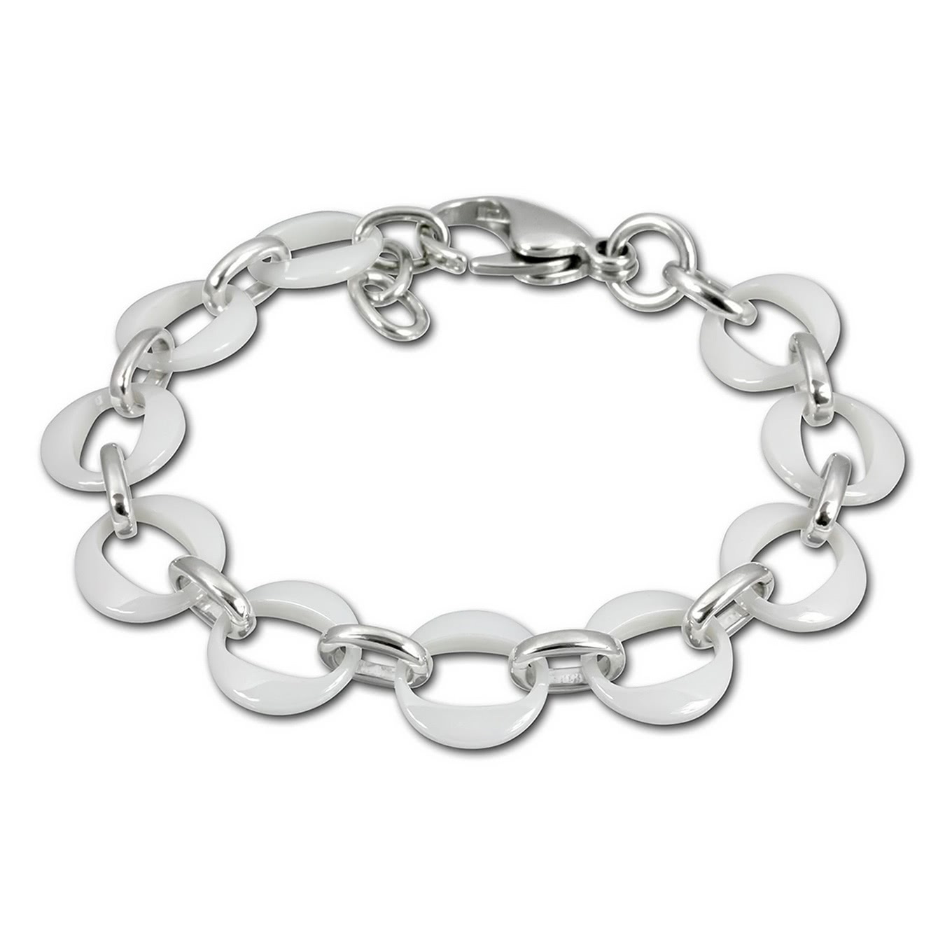 Amello Damen Armband Ringe Edelstahl Keramik Schmuck silber weiß ESAX02W