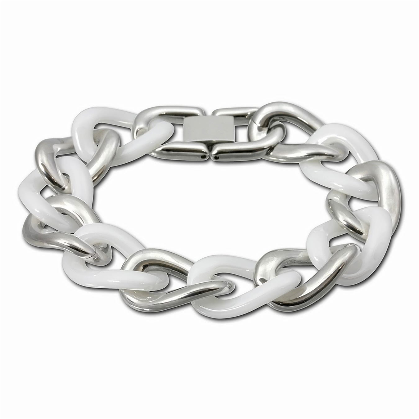 Amello Damen Armband Panzer Big Edelstahl Keramik Schmuck silber weiß ESAX06W