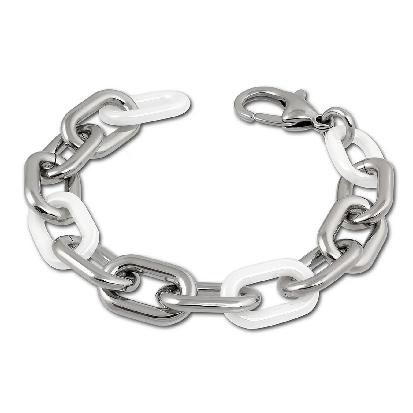 Amello Damen Armband grobe Glieder Edelstahl Keramik silber weiß ESAX19W9