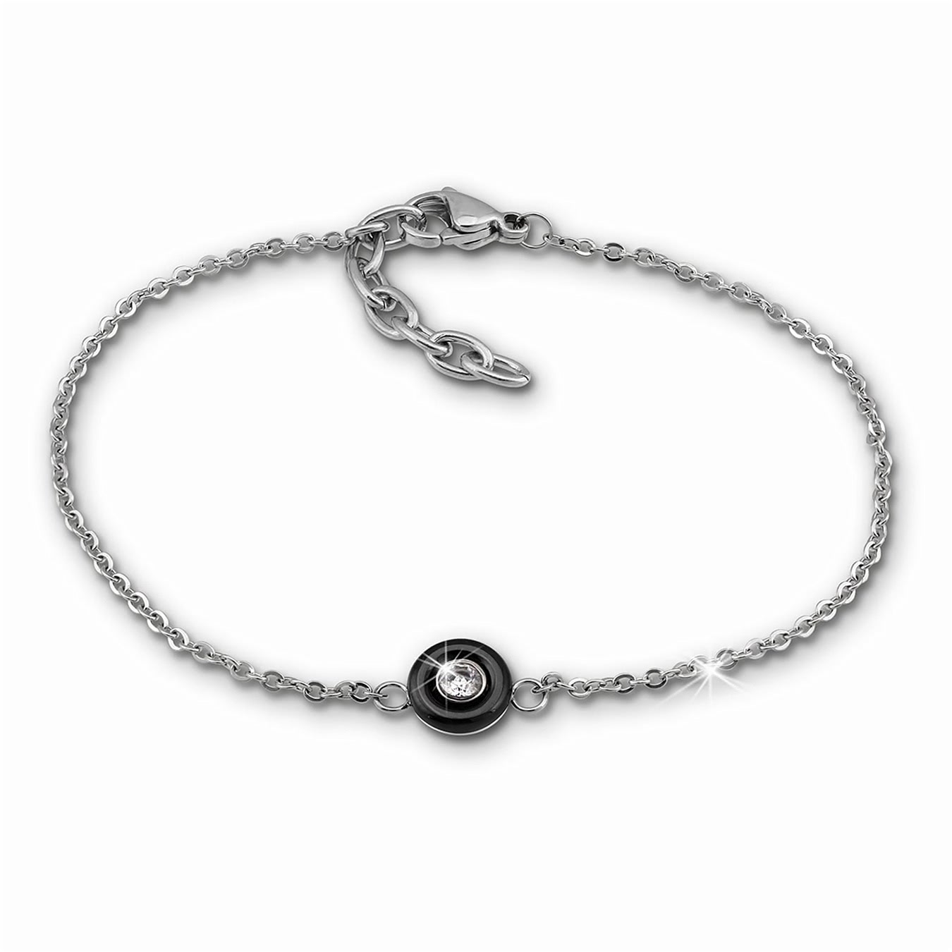 Amello Damen Armband Stein Edelstahl Keramik Schmuck silber schwarz ESAX35S8