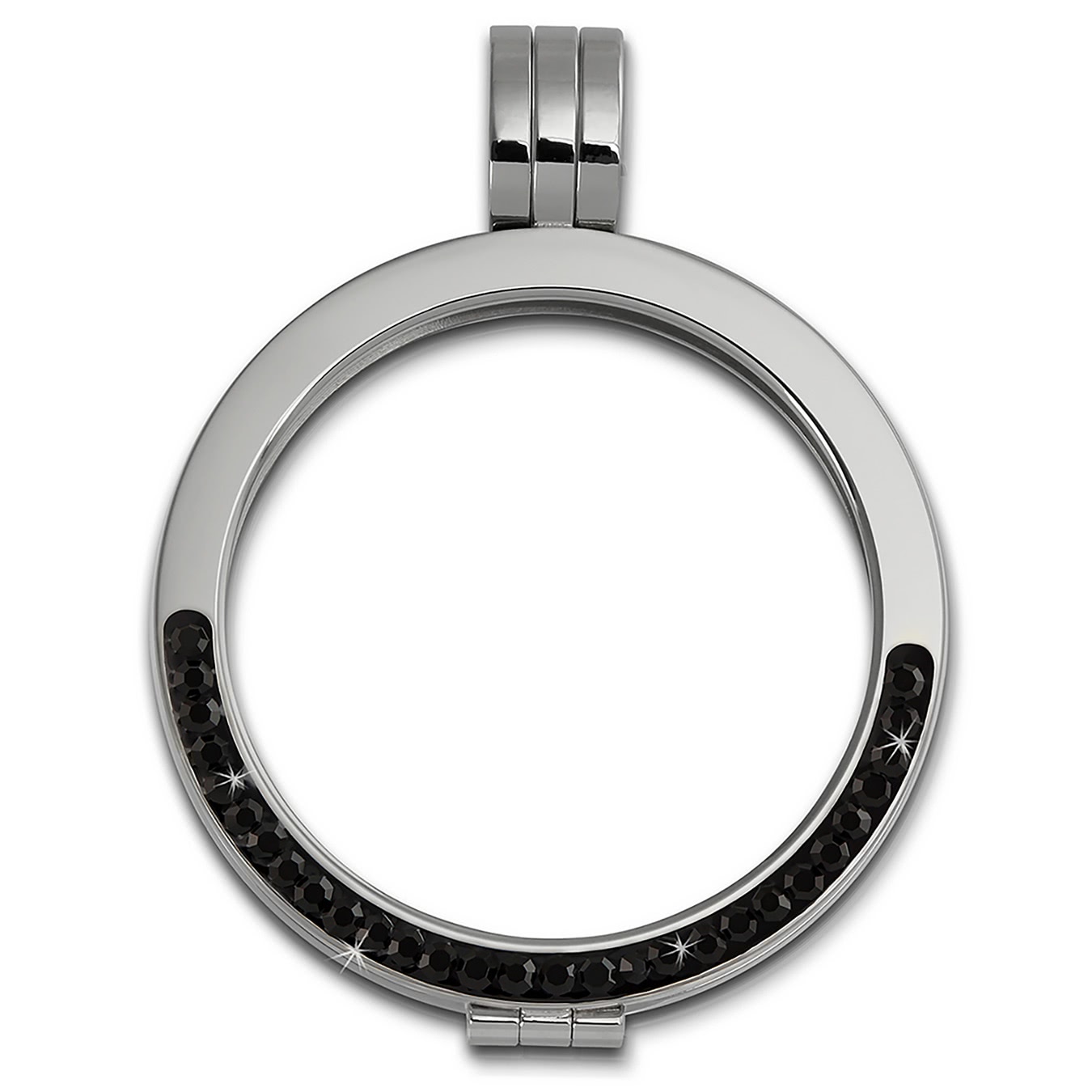 Amello Coin Halsschmuck Damen Anhänger silber Zirkonia schwarz Edelstahl ESC002S