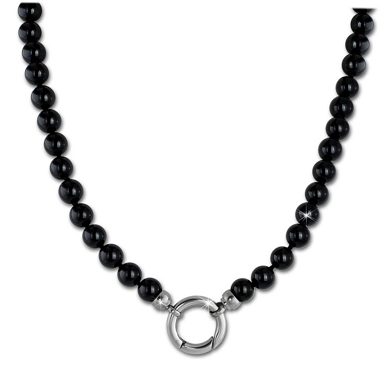 Amello Damen Perlenkette Coin Kette 100cm Onyx Stahl Halsschmuck schwarz ESC115S