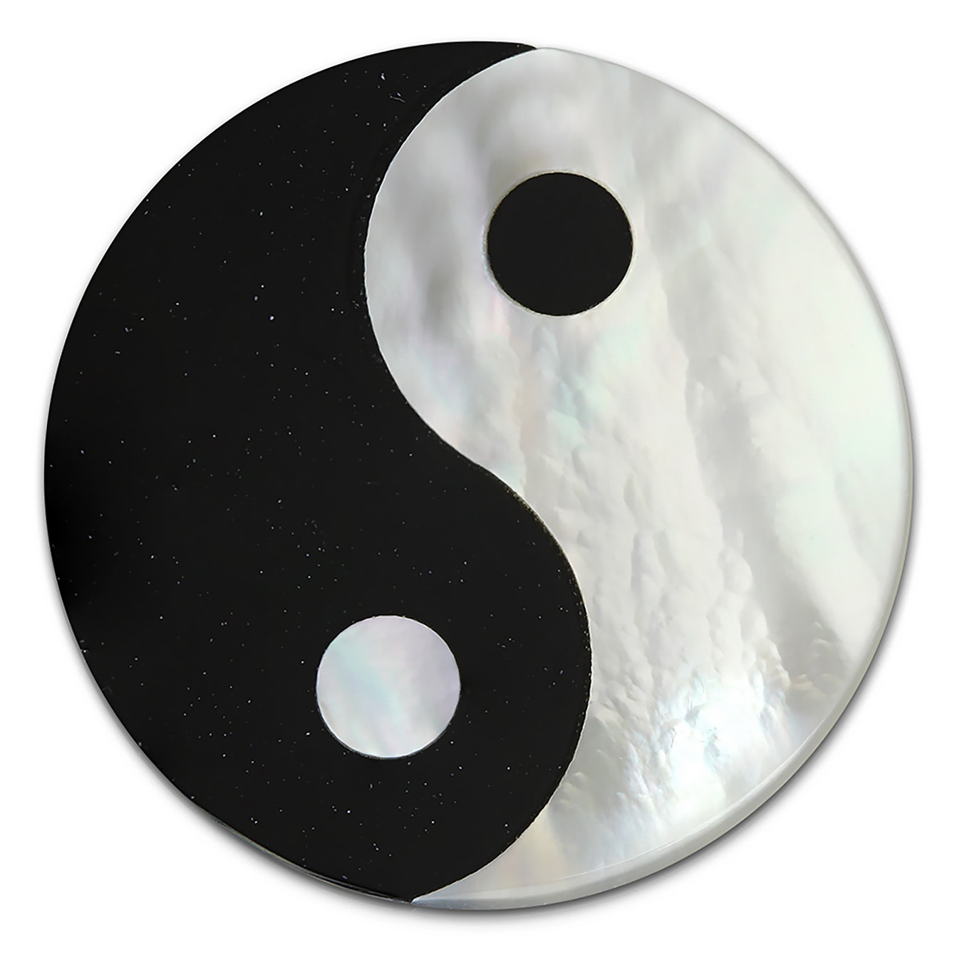 Amello Damen Coins 30 mm schwarz weiß Yin Yang Perlmutt Kunststoff Coin ESC602S