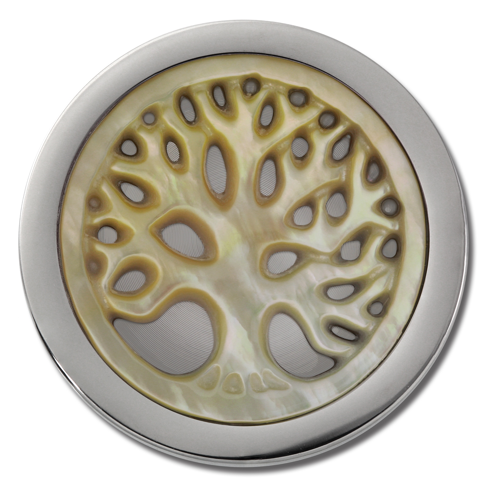 Amello Damen Coins 25 mm mehrfarbig Lebensbaum Perlmutt Edelstahl Coin ESC743F