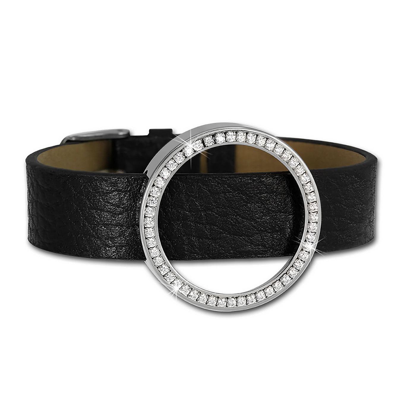 Amello Damen Coin Armband Edelstahl Leder Armschmuck 24cm schwarz silber ESCA02J