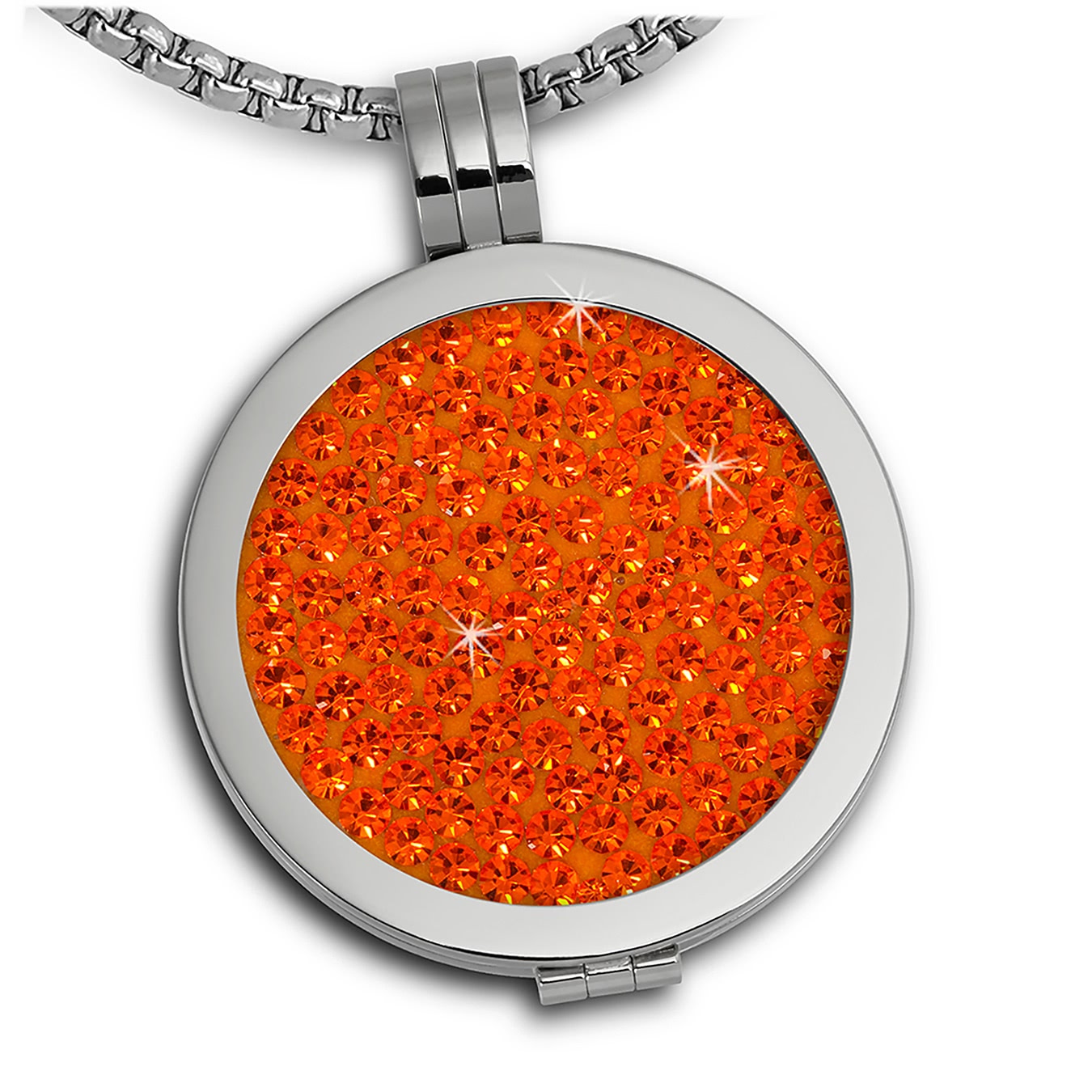 Amello Kette Anhänger Damen Zirkonia Coin Set silber orange Edelstahl ESCS01O