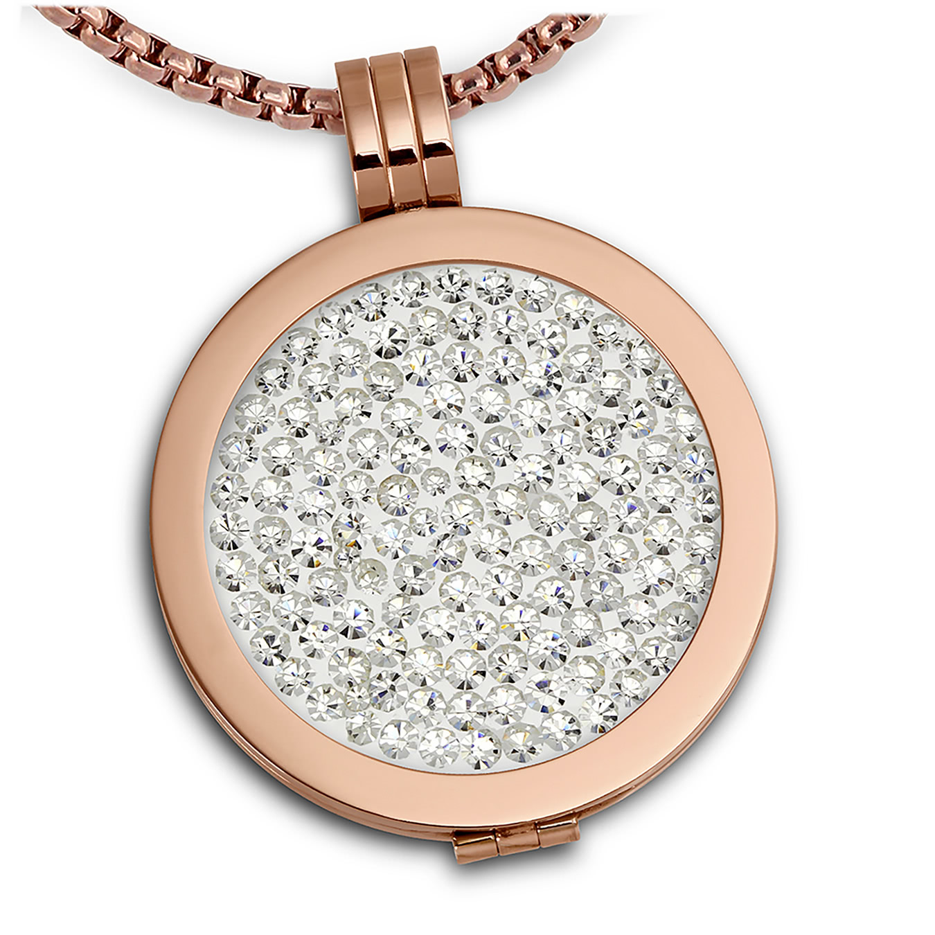 Amello Kette Anhänger Damen Zirkonia Coin Set 30mm weiß rose Edelstahl ESCS04W