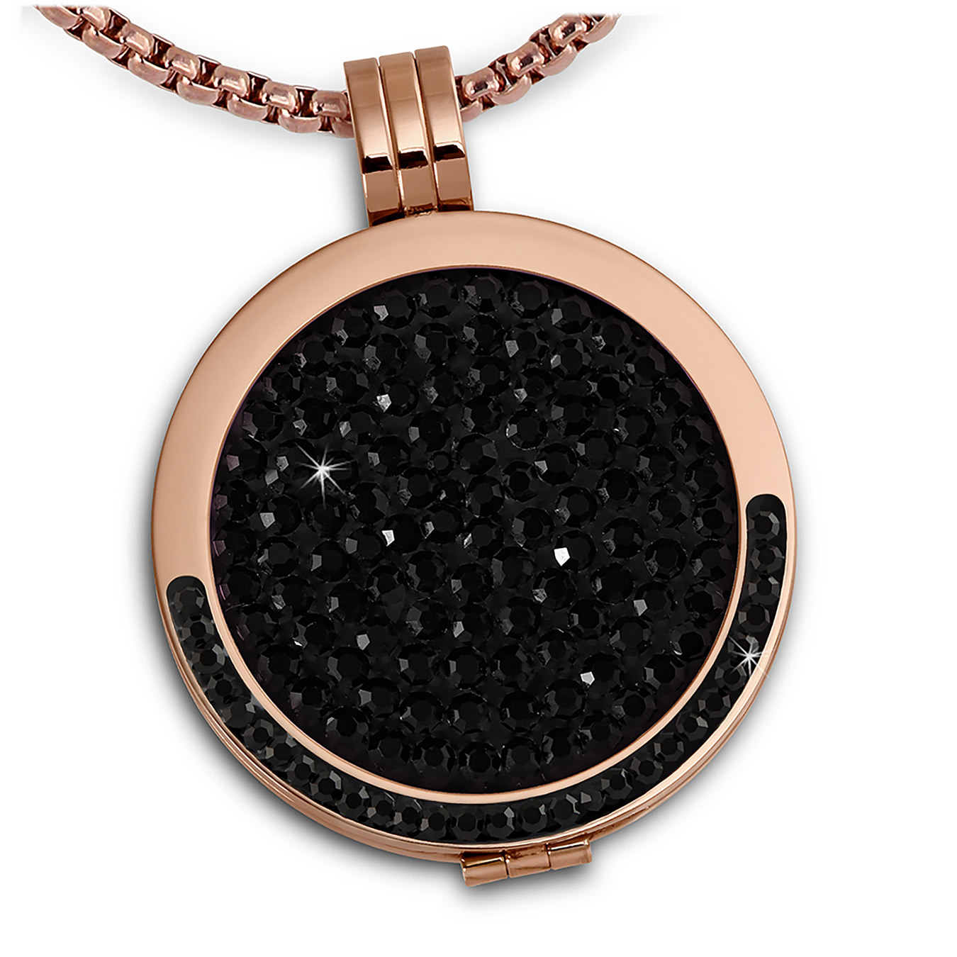 Amello Kette Anhänger Damen Zirkonia Coin Set rose schwarz Edelstahl ESCS06S