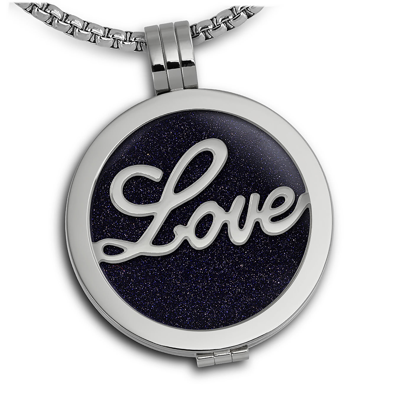 Amello Kette Anhänger Damen Coin Set Love 30mm blau silber Edelstahl ESCS11B
