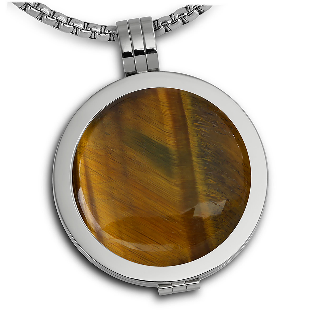 Amello Kette Anhänger Damen Coin Set Stone 30mm silber braun Edelstahl ESCS11N