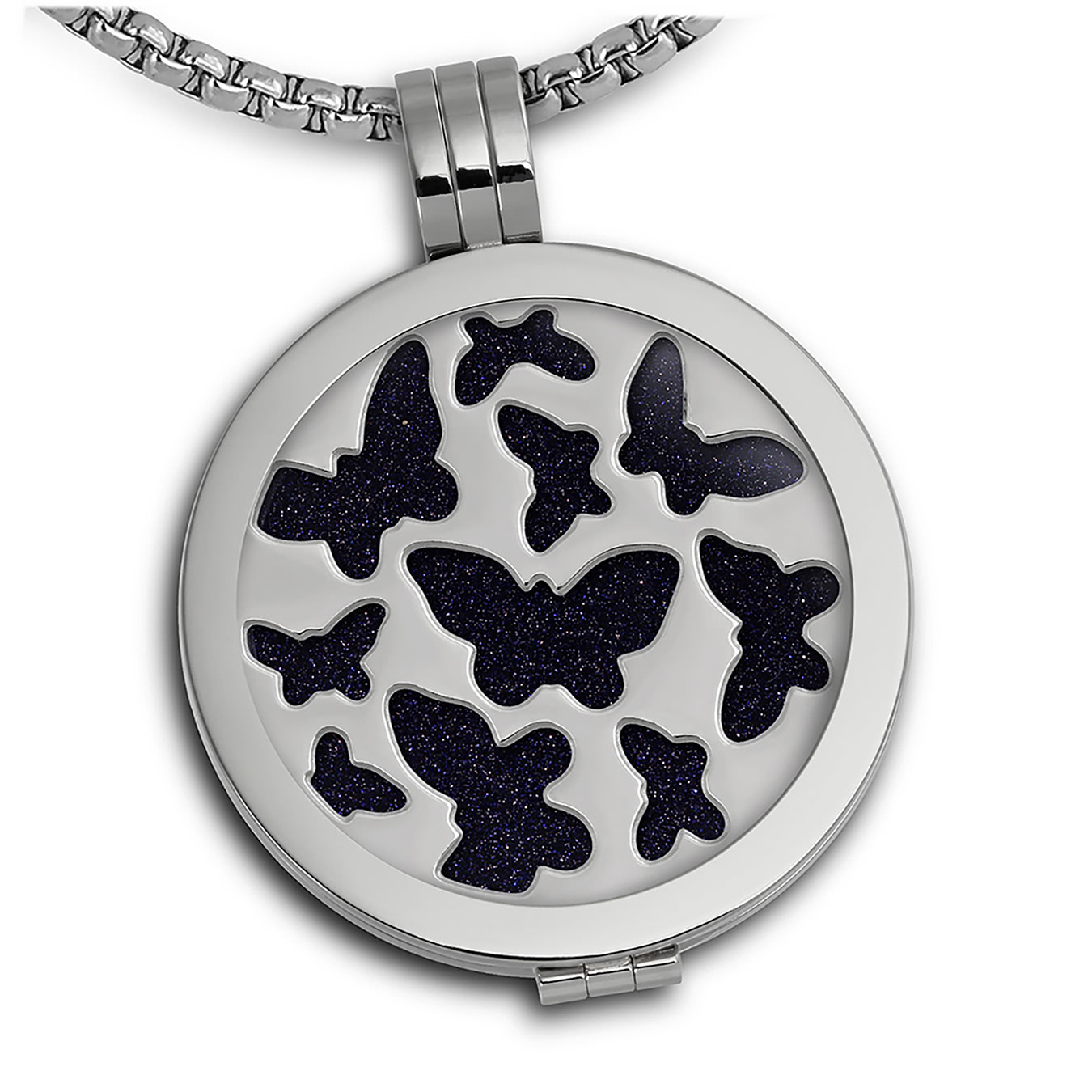 Amello Kette Anhänger Damen Coin Set Schmetterling silber schwarz Stahl ESCS12B