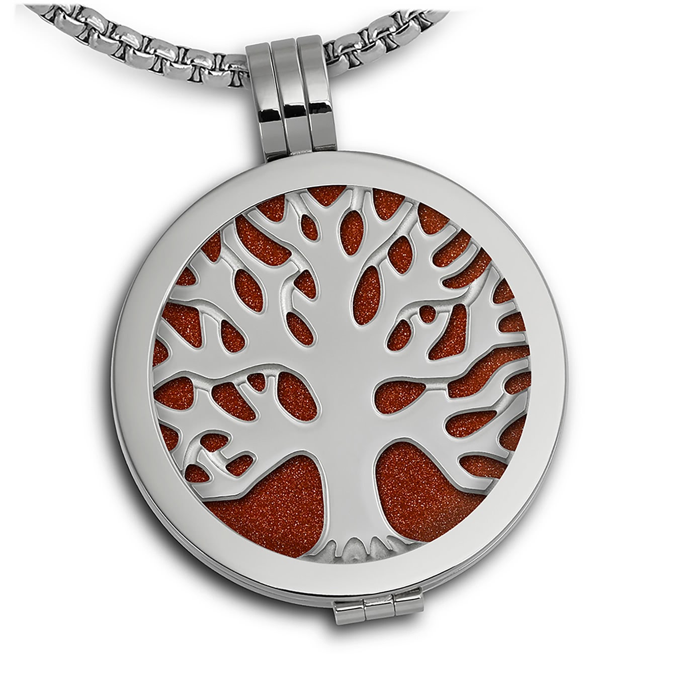 Amello Kette Anhänger Damen Coin Set Baum 30mm silber braun Edelstahl ESCS12E
