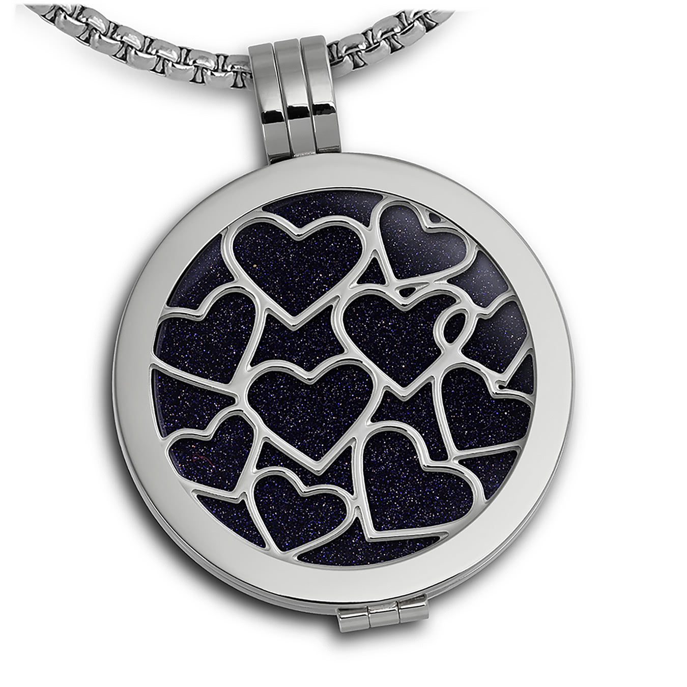 Amello Kette Anhänger Damen Coin Set Herzen silber schwarz Edelstahl ESCS13B