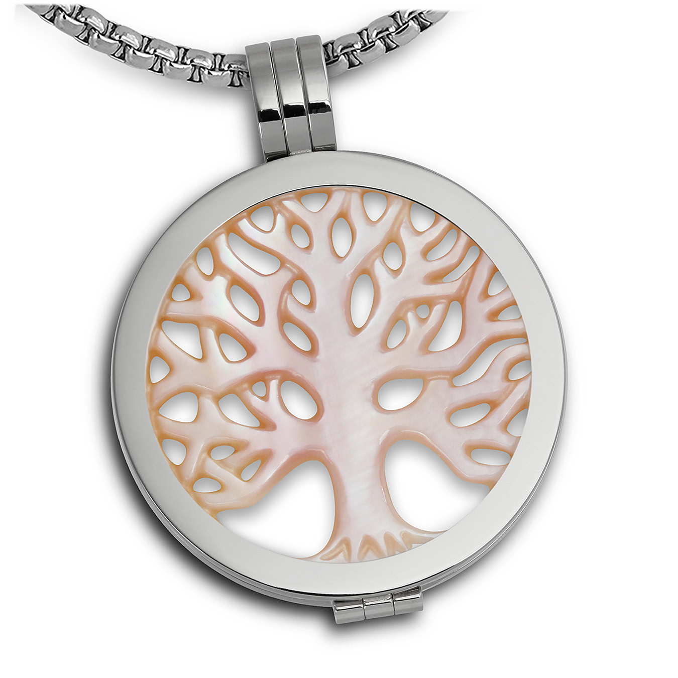 Amello Kette Anhänger Damen Coin Set Lebensbaum silber rose Edelstahl ESCS15E