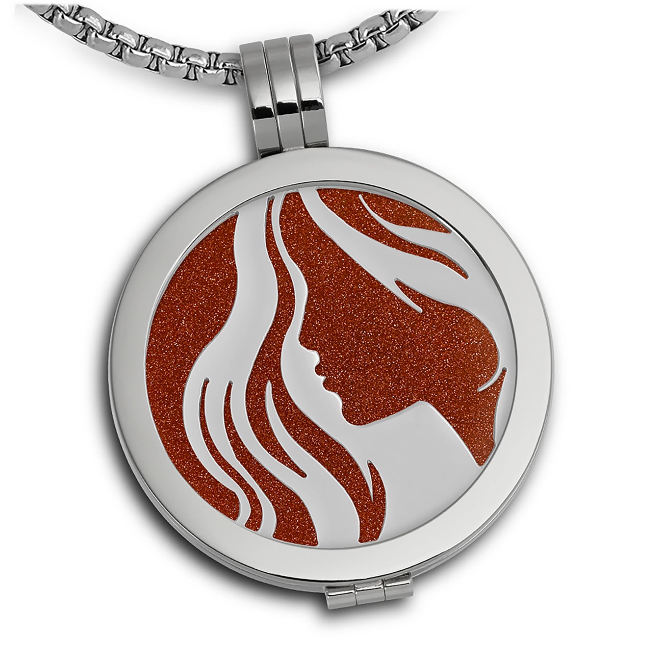 Amello Kette Anhänger Damen Coin Set Frau 30mm silber braun Edelstahl ESCS16E