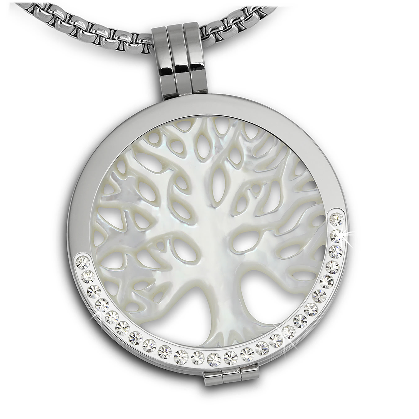 Amello Kette Anhänger Damen Zirkonia Coin Set Lebensbaum silber weiß ESCS21E