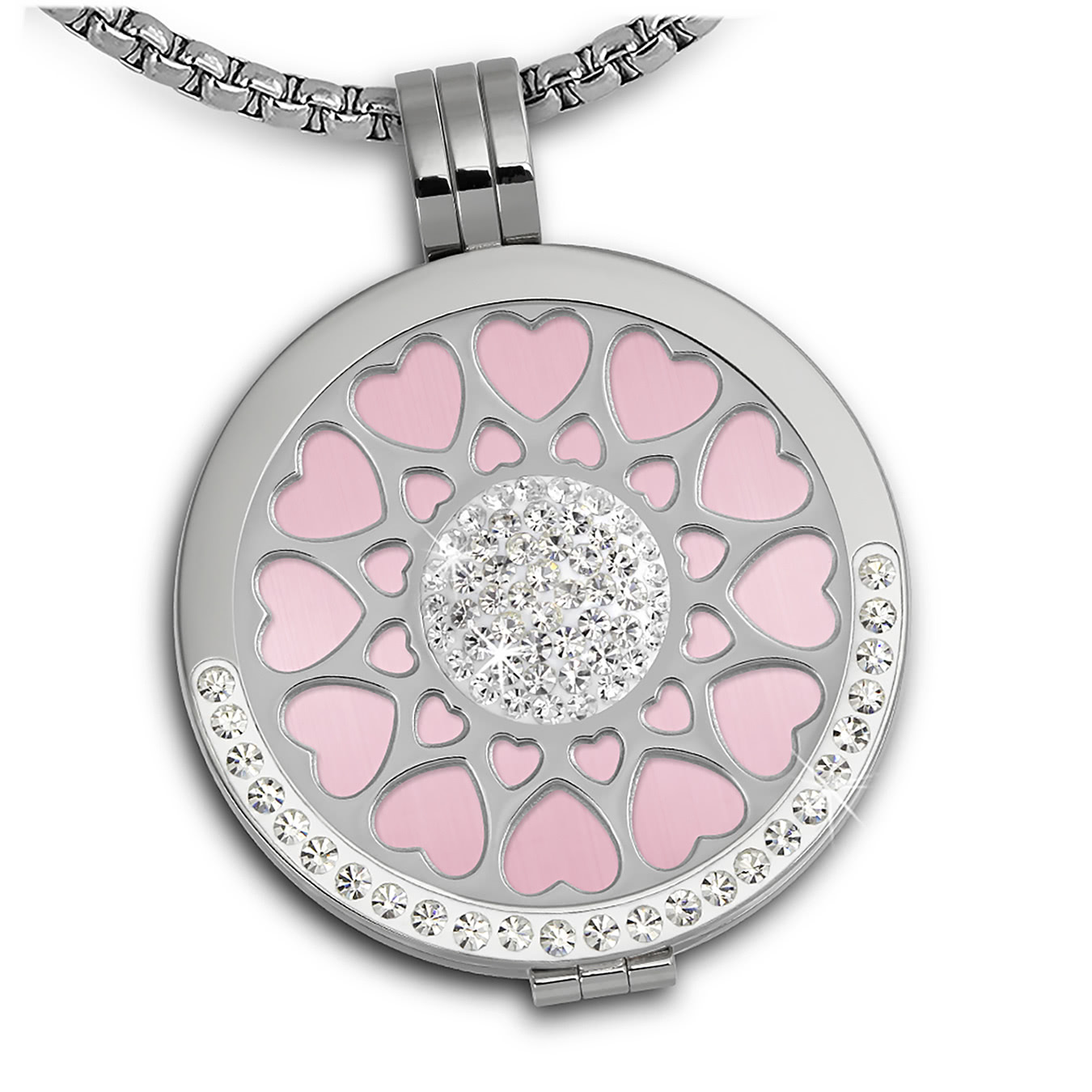 Amello Kette Anhänger Damen Zirkonia Coin Set Herzblume silber rosa ESCS21P