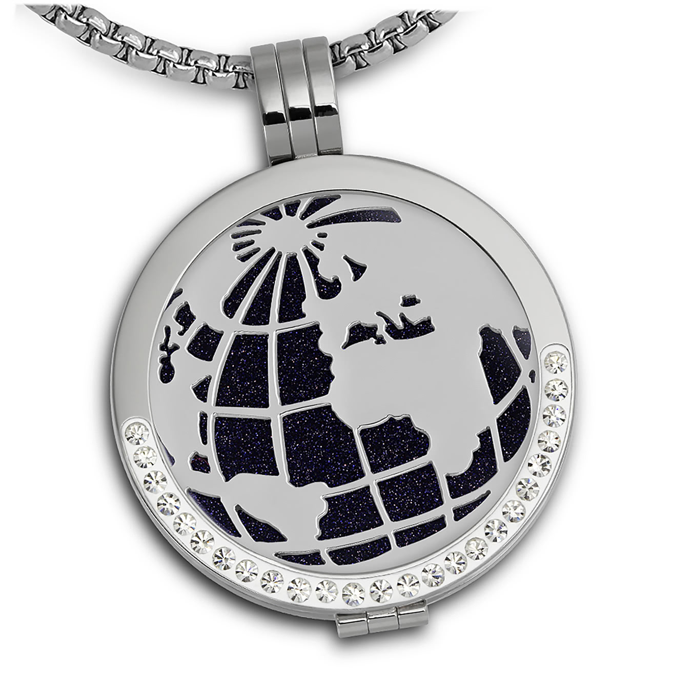 Amello Kette Anhänger Damen Zirkonia Coin Set Weltkugel silber schwarz ESCS21S