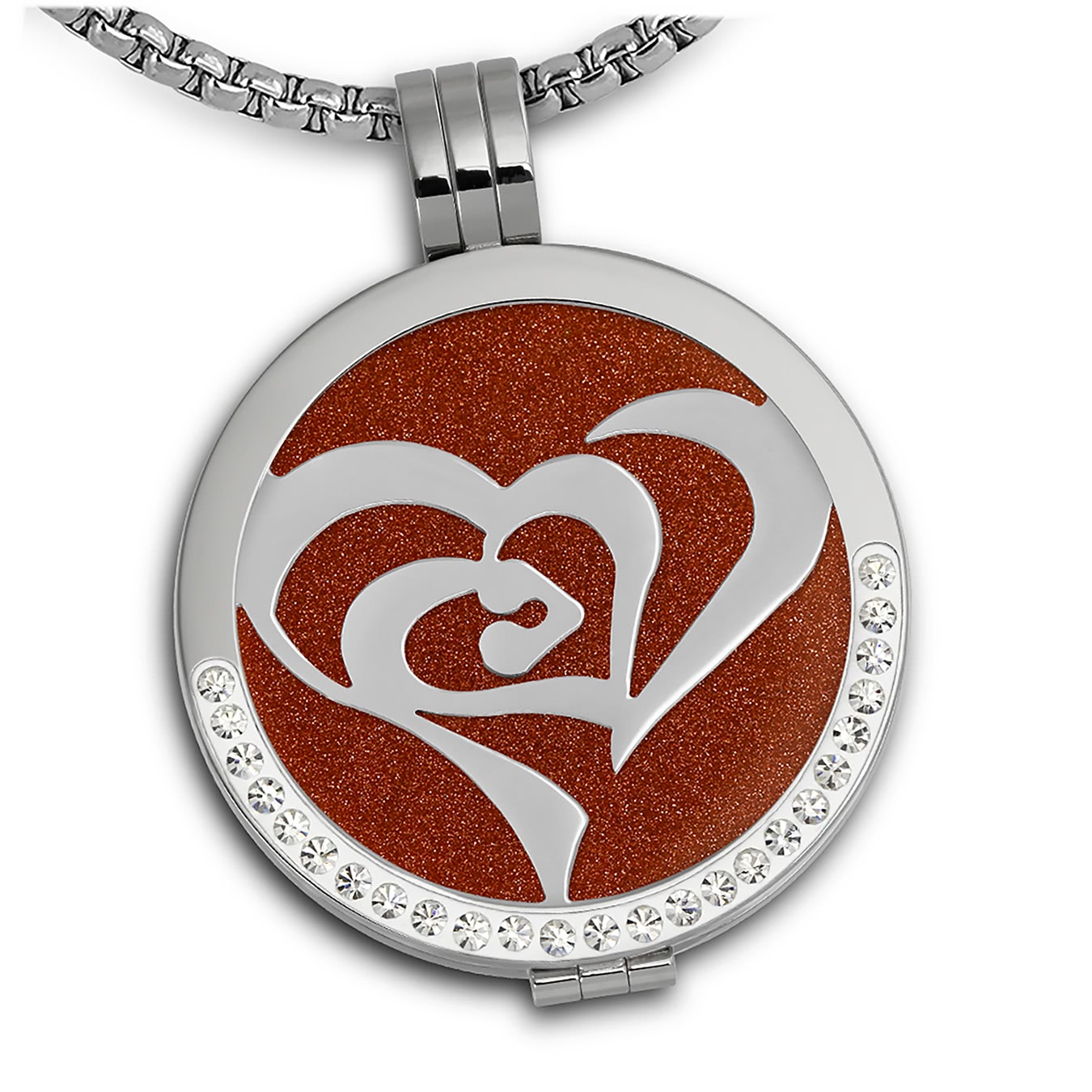 Amello Kette Anhänger Damen Zirkonia Coin Set Herz silber braun Stahl ESCS22E