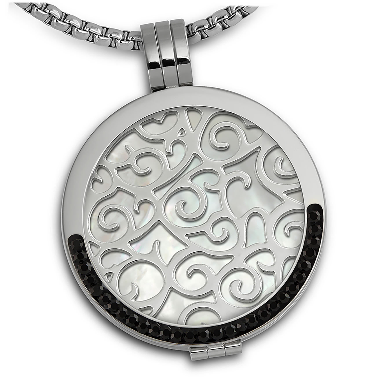 Amello Kette Anhänger Damen Zirkonia Coin Set Ornament silber schwarz ESCS33W