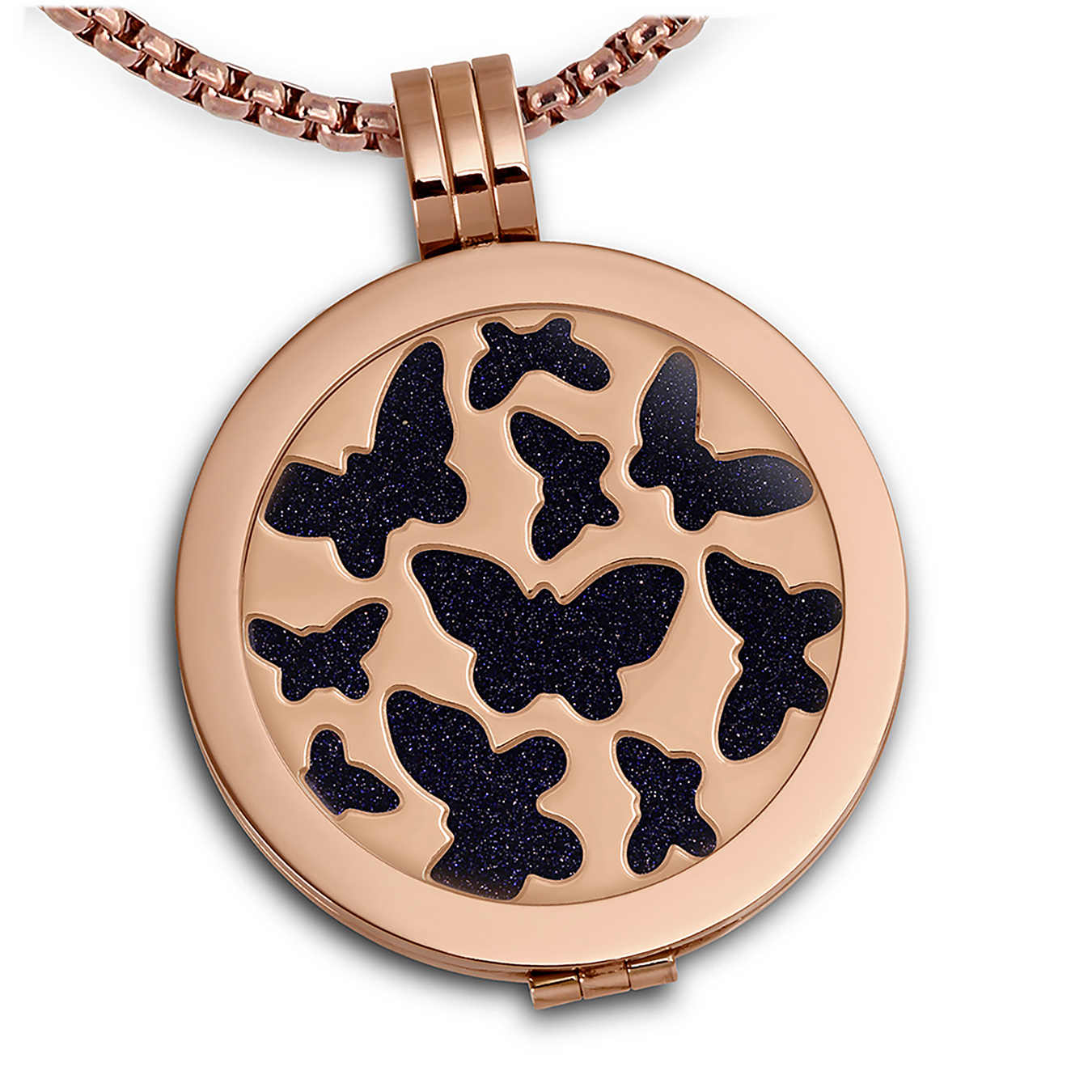 Amello Kette Anhänger Damen Coin Set Butterfly 30mm rose blau Edelstahl ESCS41B