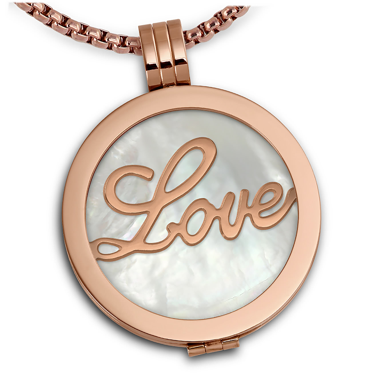 Amello Kette Anhänger Damen Coin Set Love 30mm rose weiß Edelstahl ESCS41W
