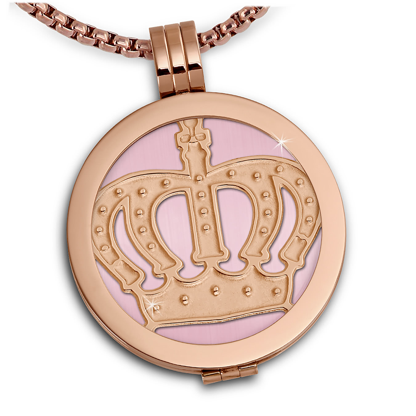 Amello Kette Anhänger Damen Coin Set Krone 30mm rose rosa Edelstahl ESCS42A