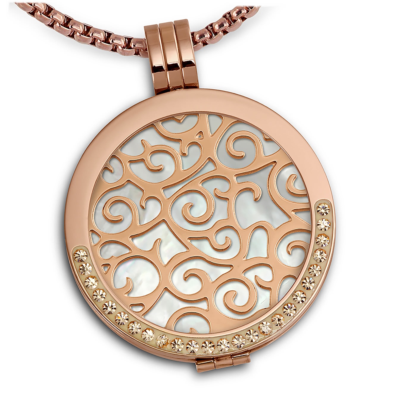 Amello Kette Anhänger Damen Zirkonia Coin Set Ornament rose weiß Stahl ESCS51W