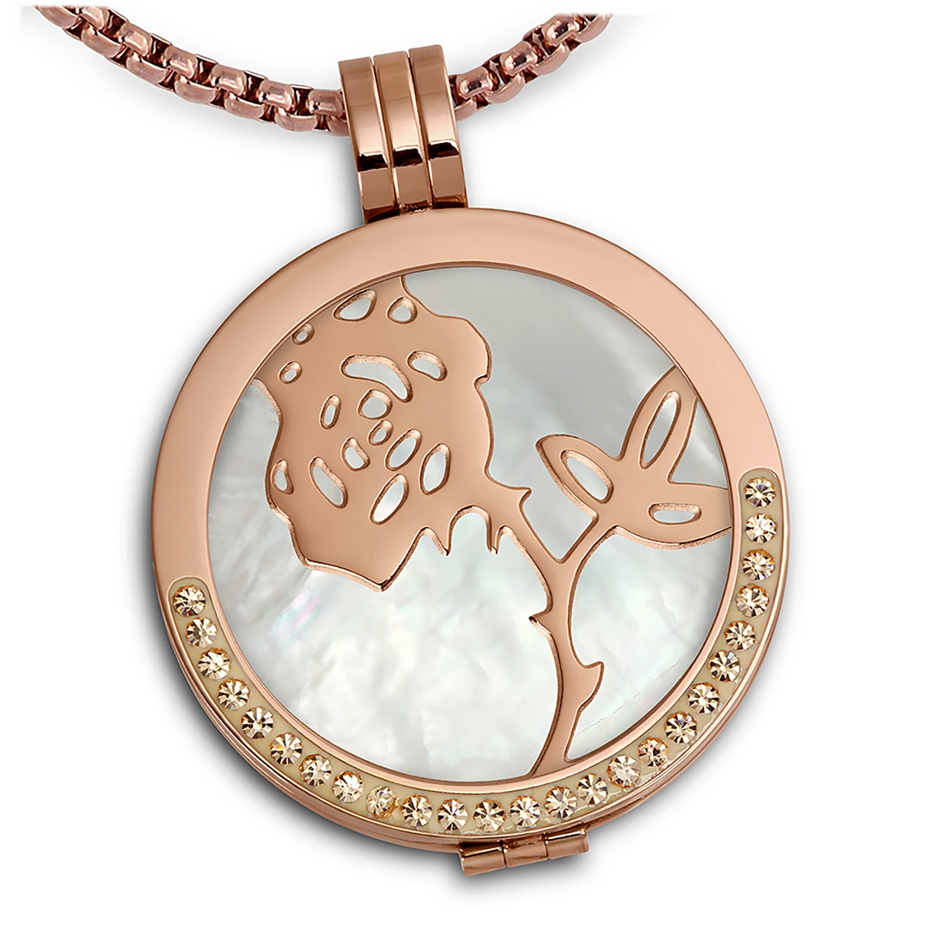 Amello Kette Anhänger Damen Zirkonia Coin Set Roses rose weiß Edelstahl ESCS52W