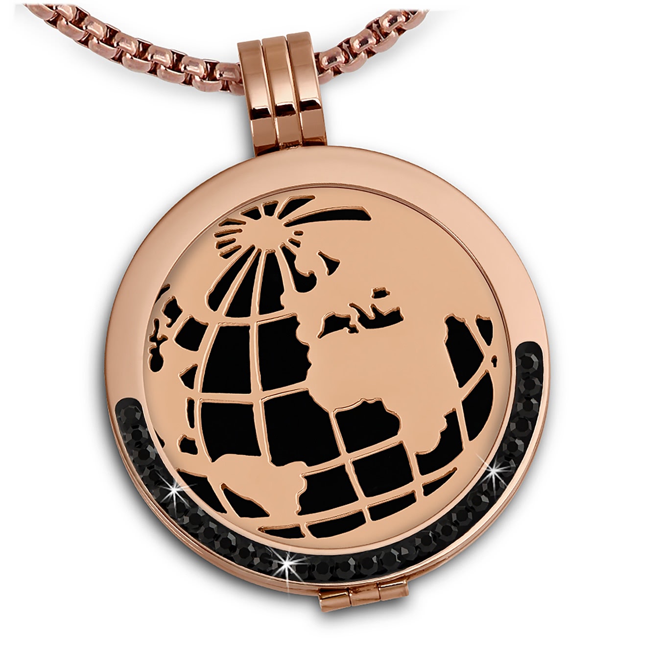Amello Kette Anhänger Damen Zirkonia Coin Set Weltkugel rose schwarz ESCS62S