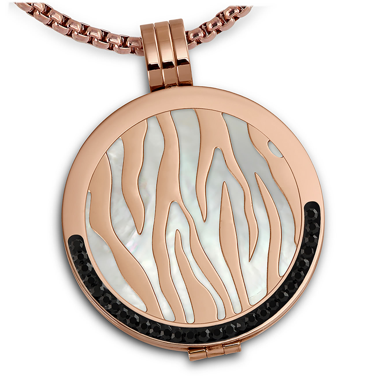 Amello Kette Anhänger Damen Zirkonia Coin Set Muster rose schwarz Stahl ESCS62W