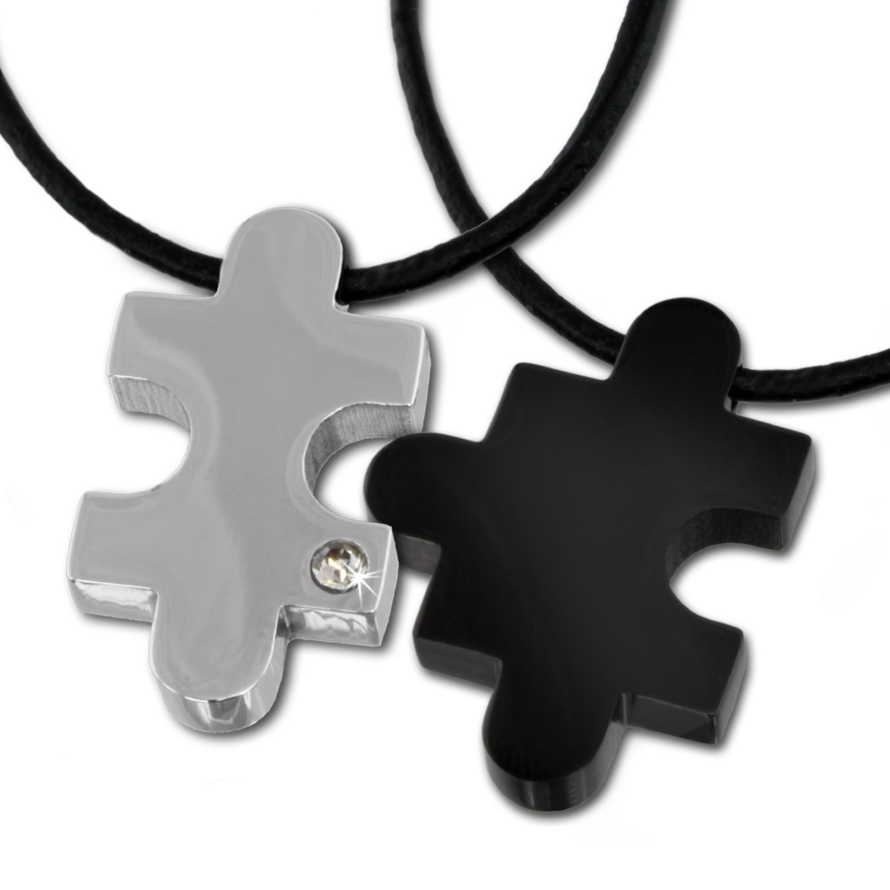 Amello Halskette 55cm Puzzle Edelstahl Hals-Schmuck silber schwarz ESK023S
