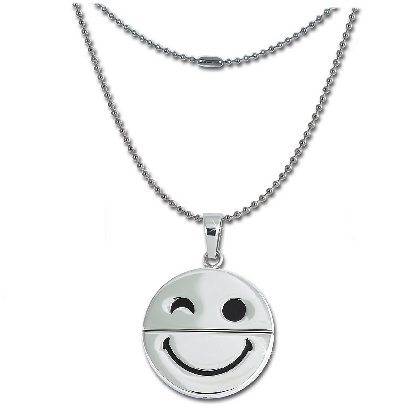Amello Halskette 58cm schmunzelnder Smiley Edelstahl Schmuck silber ESK032W