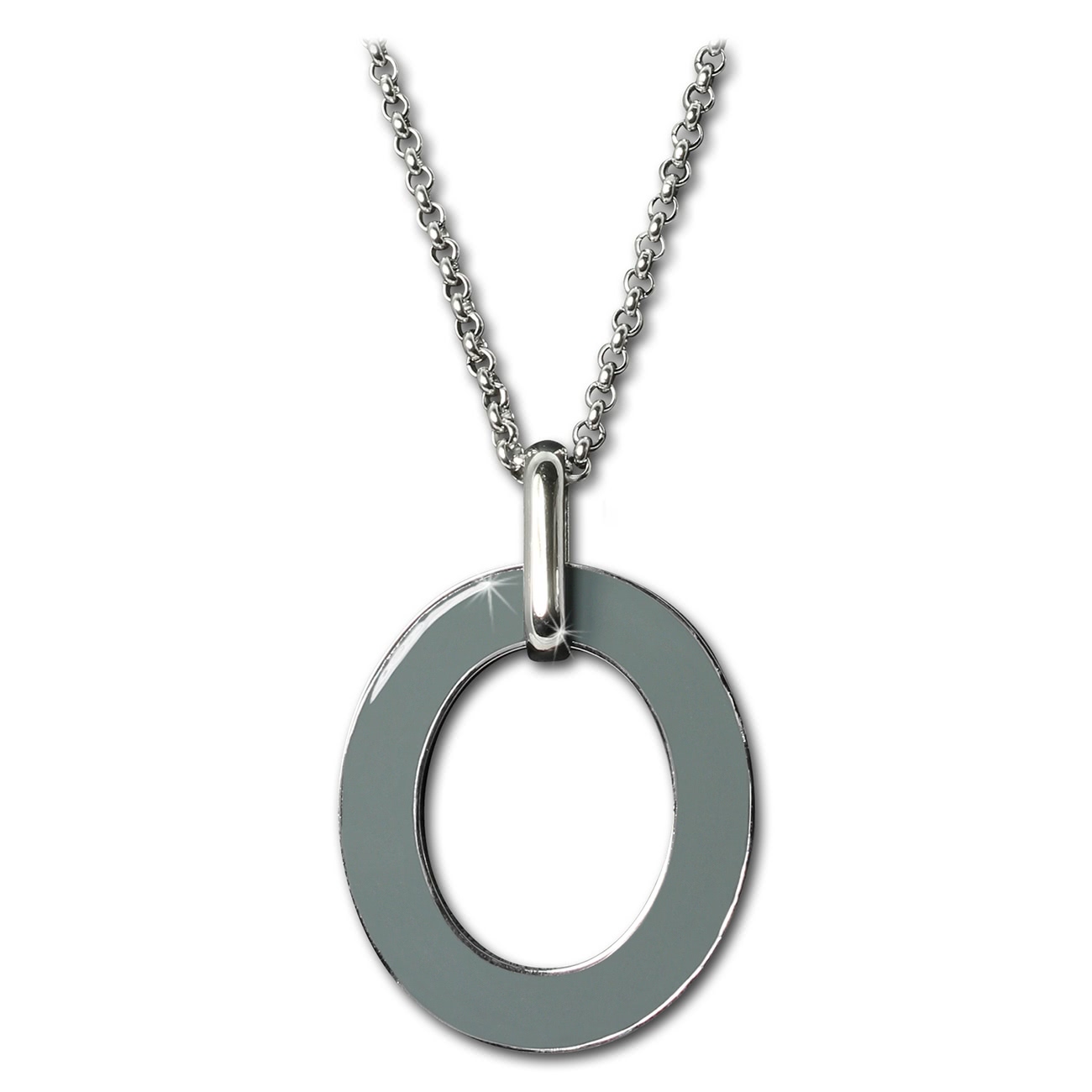 Amello Halskette 84cm Oval Damen Edelstahl Hals-Schmuck grau weiß ESKG01K
