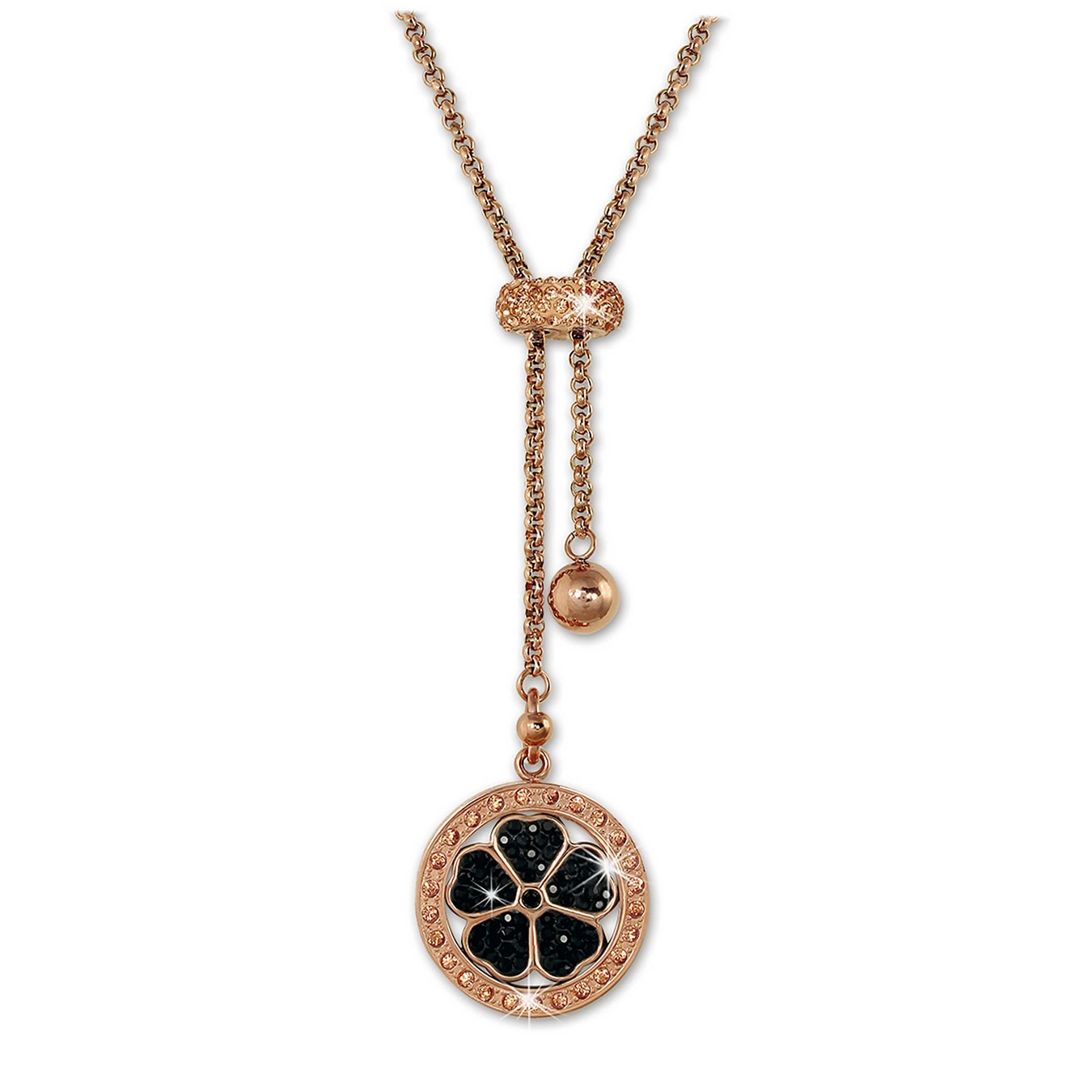 Amello Halskette 80cm Kleeblatt Edelstahl 333er Rosegold Schmuck schwarz ESKQ01S