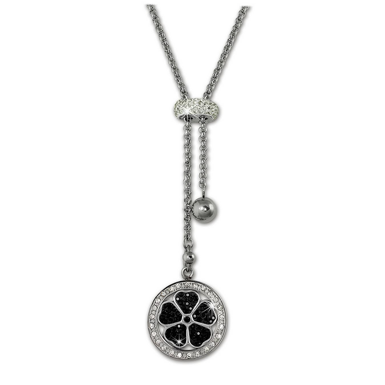 Amello Halskette 80cm Kleeblatt Edelstahl Hals-Schmuck schwarz weiß ESKQ02S