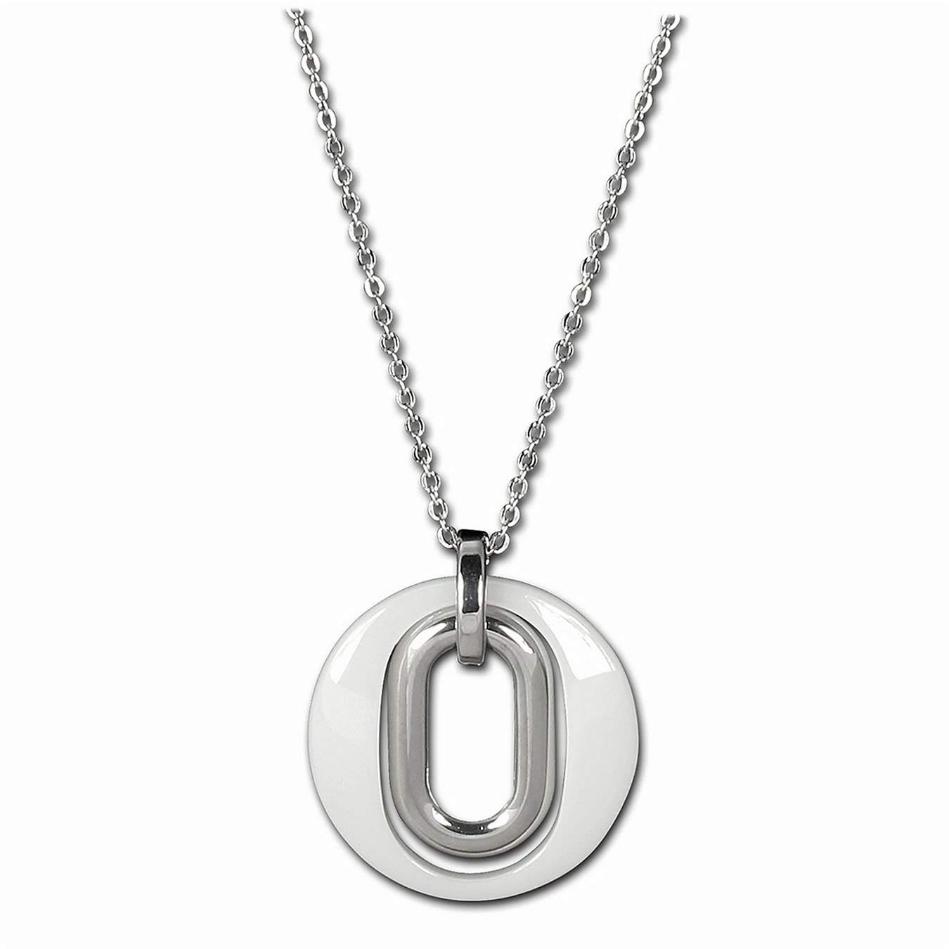 Amello Halskette 80cm Magic Edelstahl Keramik Schmuck silber weiß ESKX03W