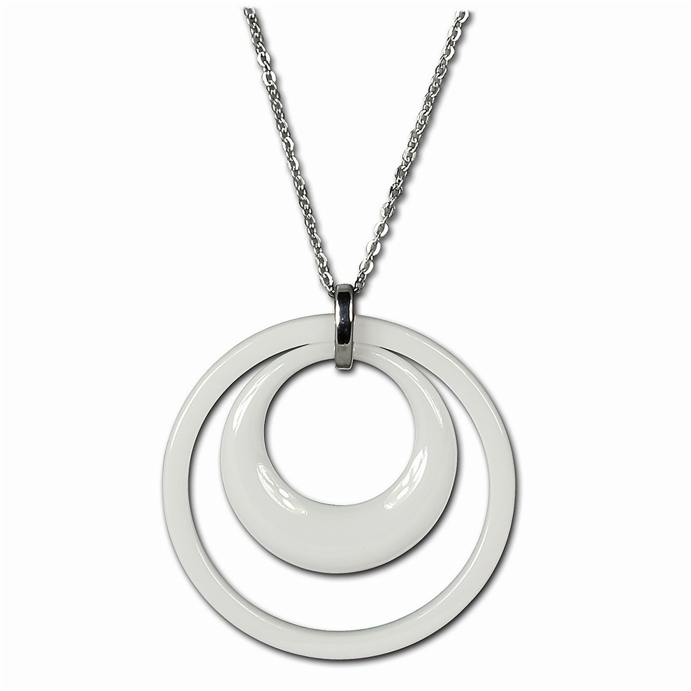 Amello Halskette 80cm Doppel Edelstahl Keramik Schmuck silber weiß ESKX05W