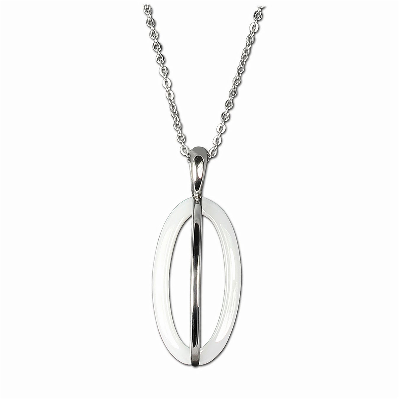 Amello Halskette 70cm Ellipse Edelstahl Keramik Schmuck silber weiß ESKX09W