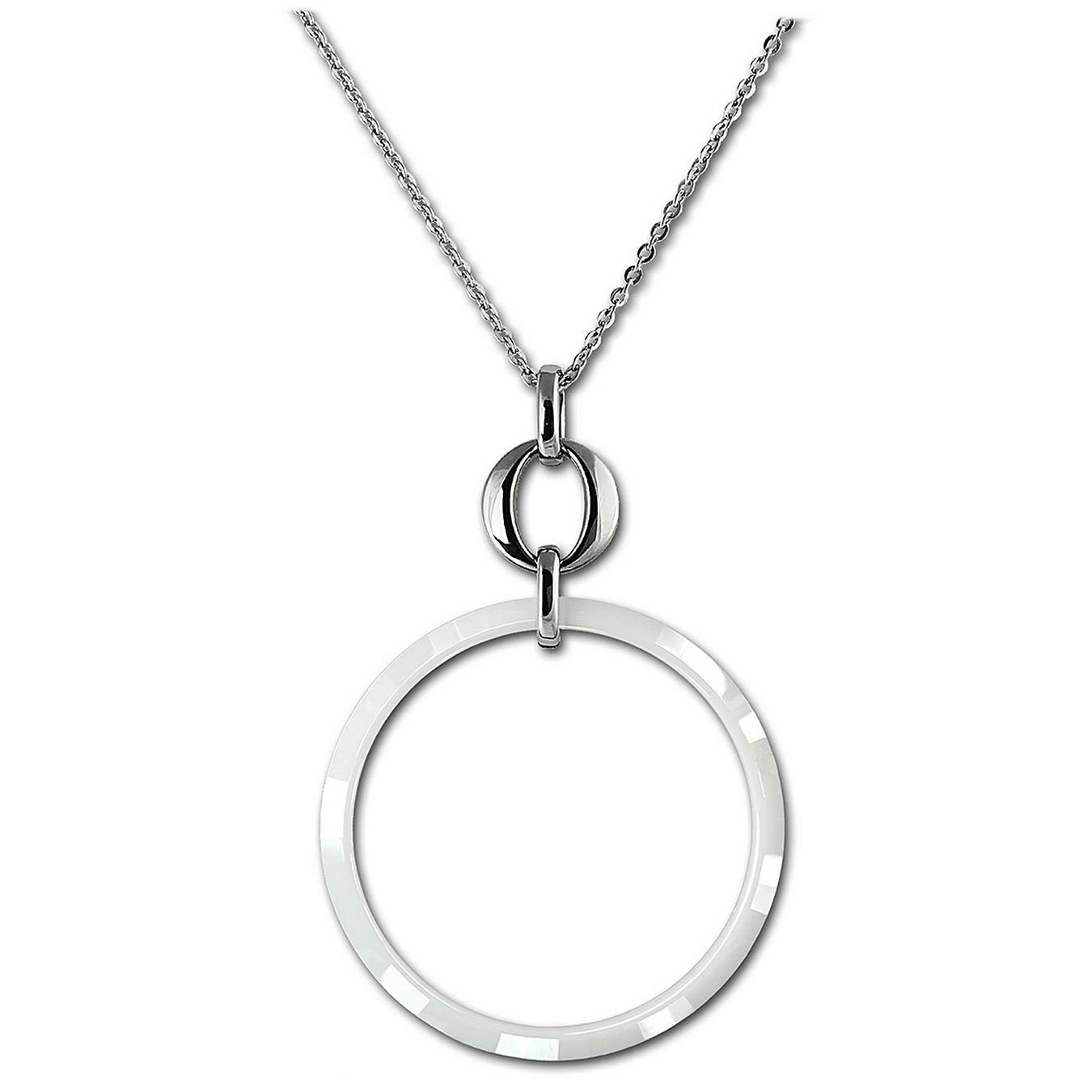 Amello Halskette 50cm Circle Edelstahl Keramik Schmuck silber weiß ESKX14W