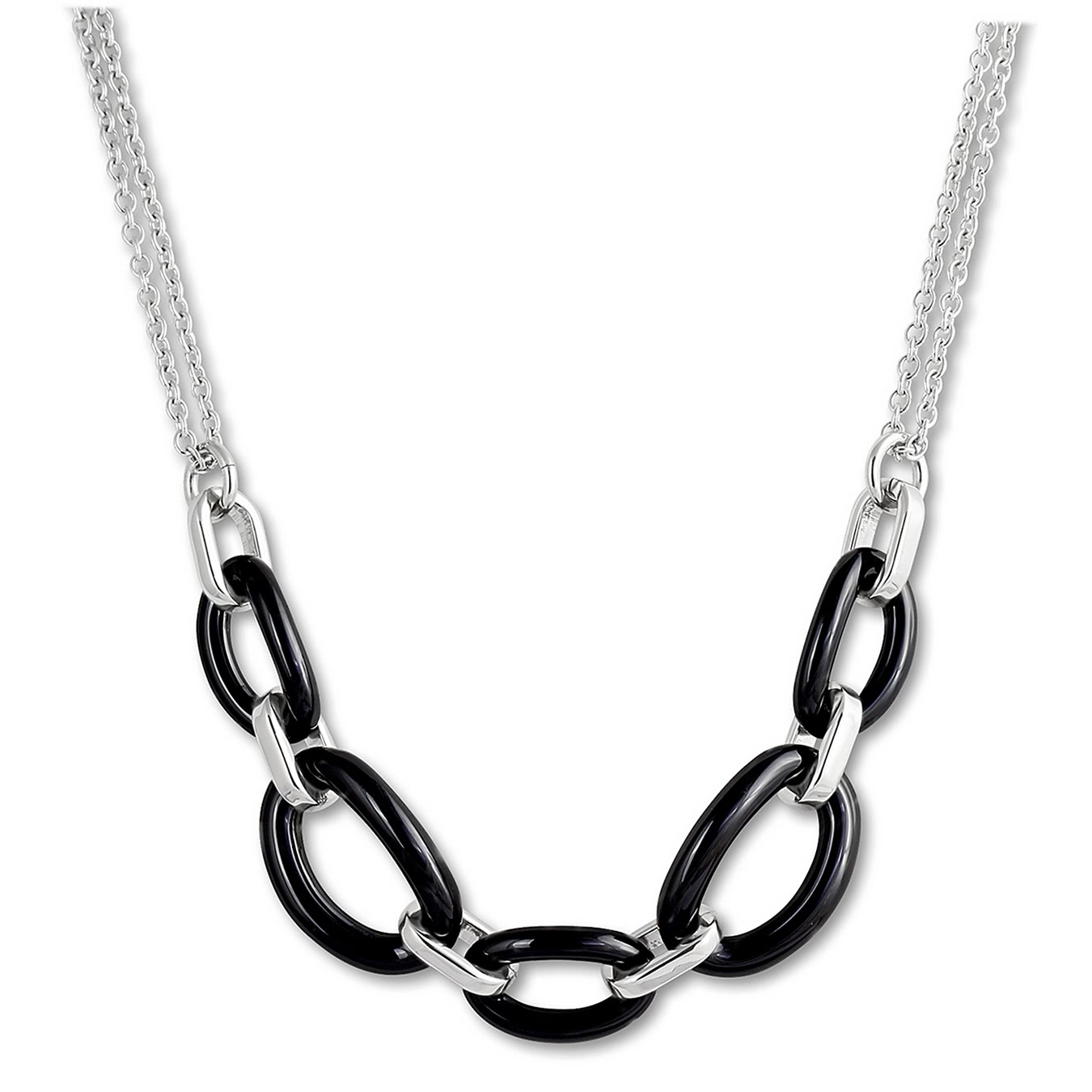 Amello Halskette 50cm Ovale Edelstahl Keramik Schmuck silber schwarz ESKX16S
