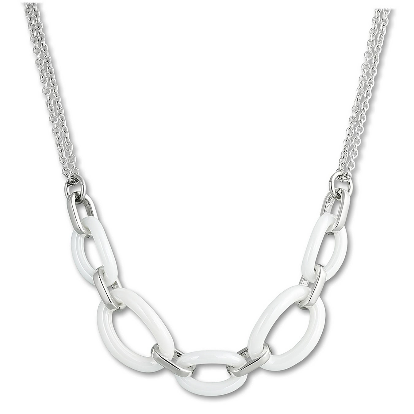 Amello Halskette 50cm Ovale Edelstahl Keramik Schmuck silber weiß ESKX16W