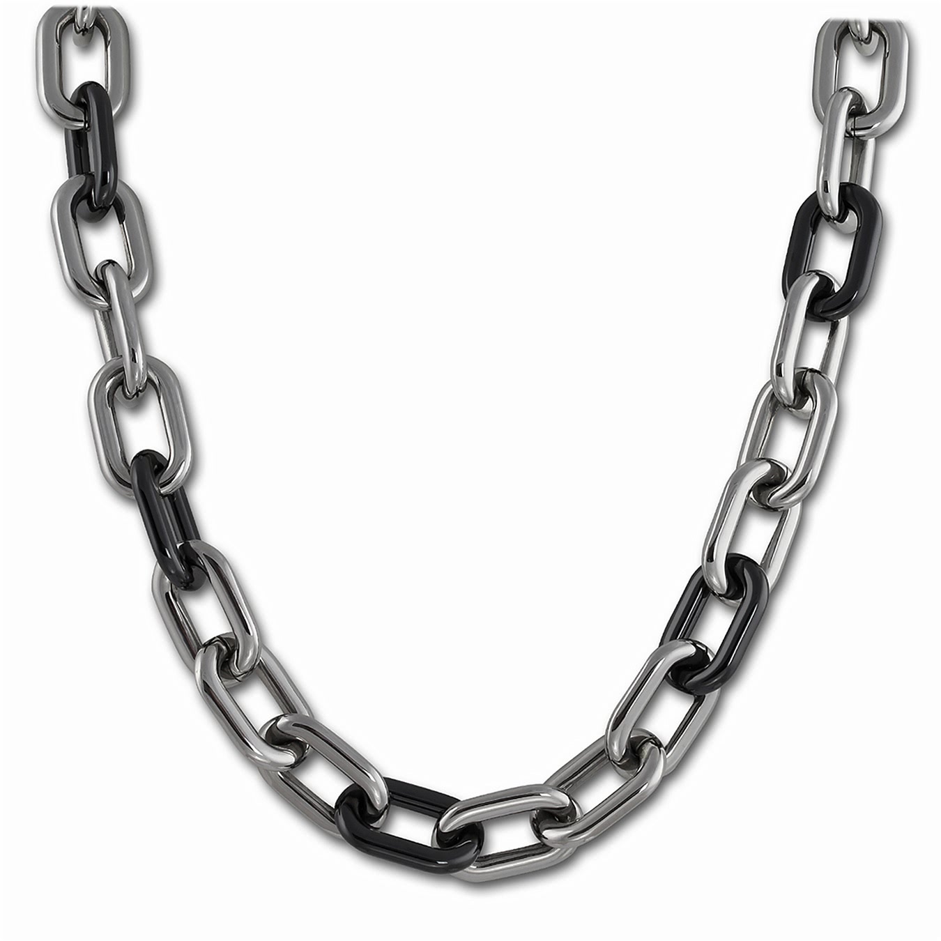 Amello Halskette 49cm grobe Glieder Edelstahl Keramik silber schwarz ESKX19S0