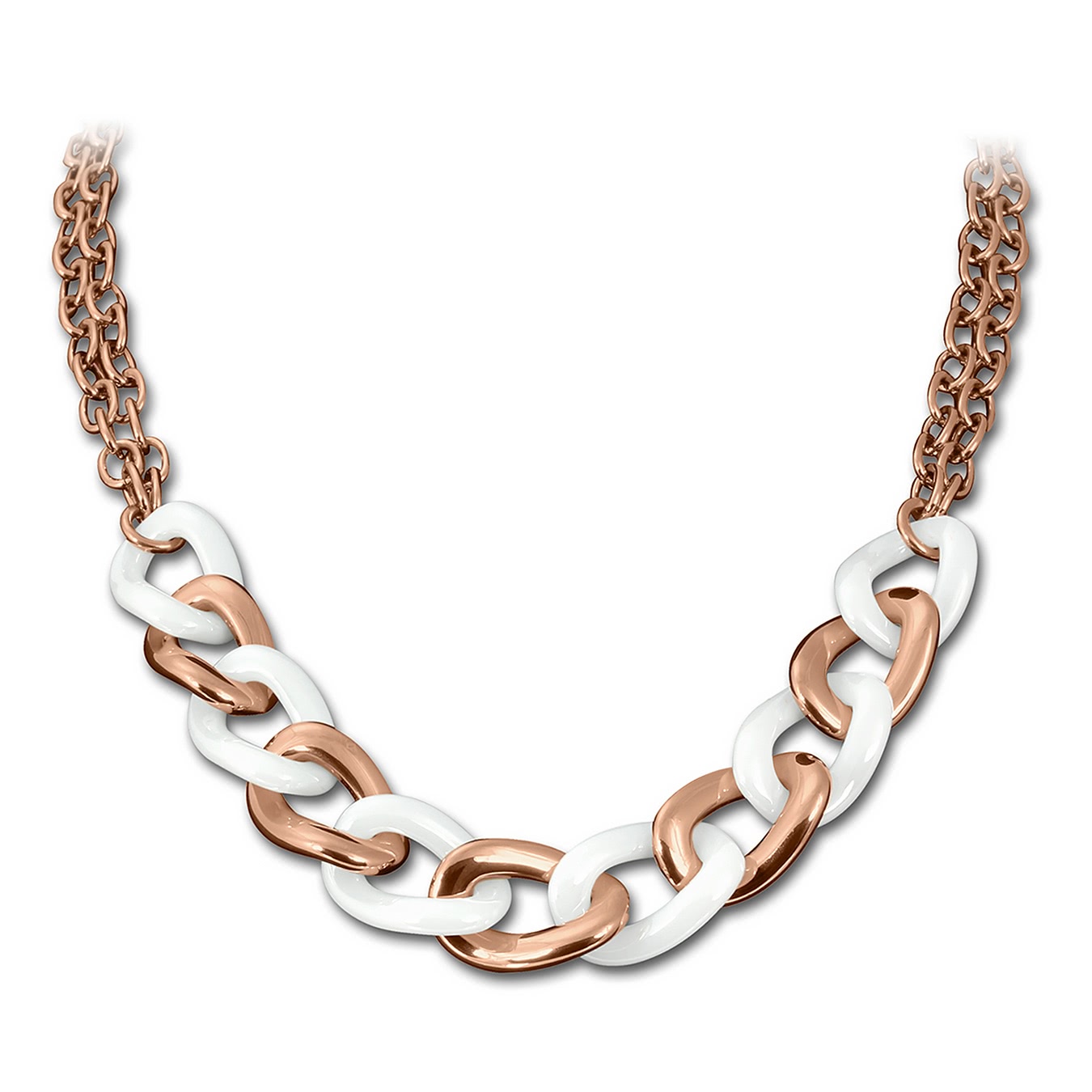 Das Produkt besteht aus Edelstahl, 333er Rosegold vergoldet und Keramik (Edelstahl (Stainless Steel) und vergoldet (Roségold 333)).