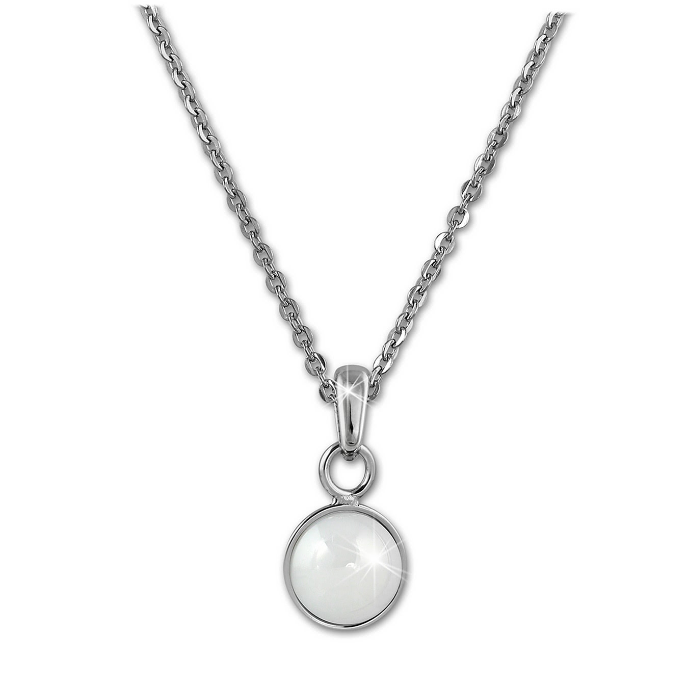Amello Halskette 50cm Halbkugel Edelstahl Keramik Schmuck silber weiß ESKX36W5